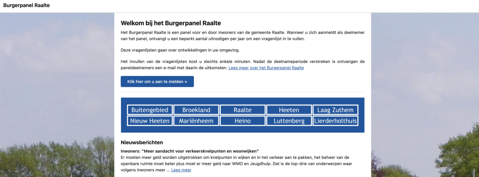 De huidige deelnemers aan het panel krijgen binnenkort automatisch een mail met een link naar de vragenlijst. Aanmelden voor het panel kan op de website www.burgerpanelraalte.nl.